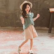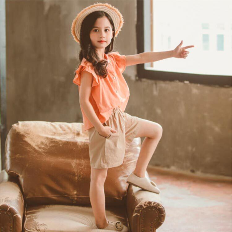 シンプルでかわいいフリルブラウスとハーフパンツの2点セットです。