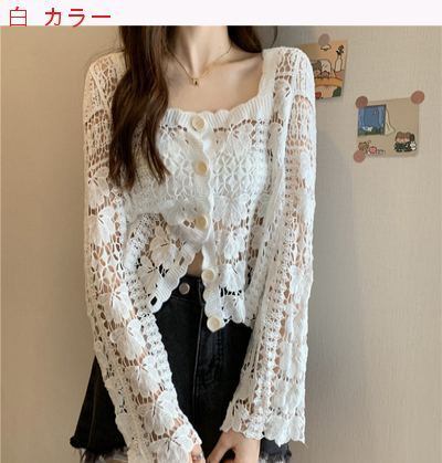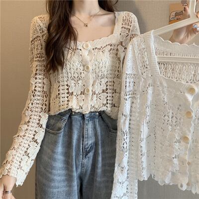 計画/中空/薄いスタイル/調整/ブラウス/新しいデザイン/夏/何でも似合う/韓国風/長袖ニット/カーディガン/女