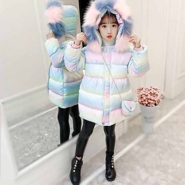 コート 中綿コート レインボー色 女の子 アウター オシャレ 可愛い スウィート フード付き
