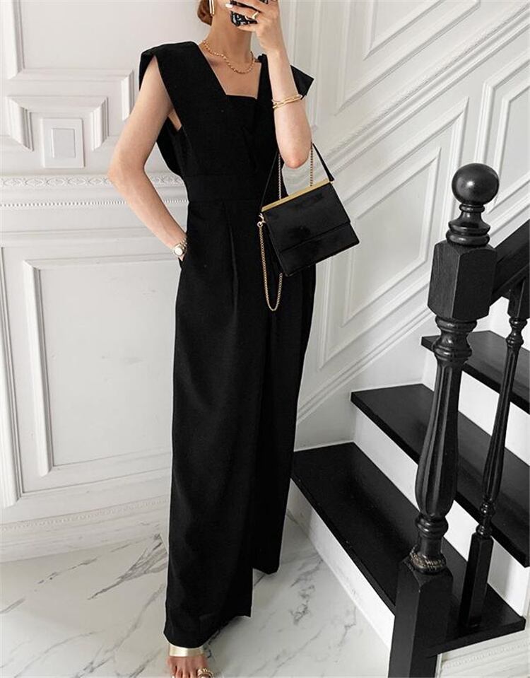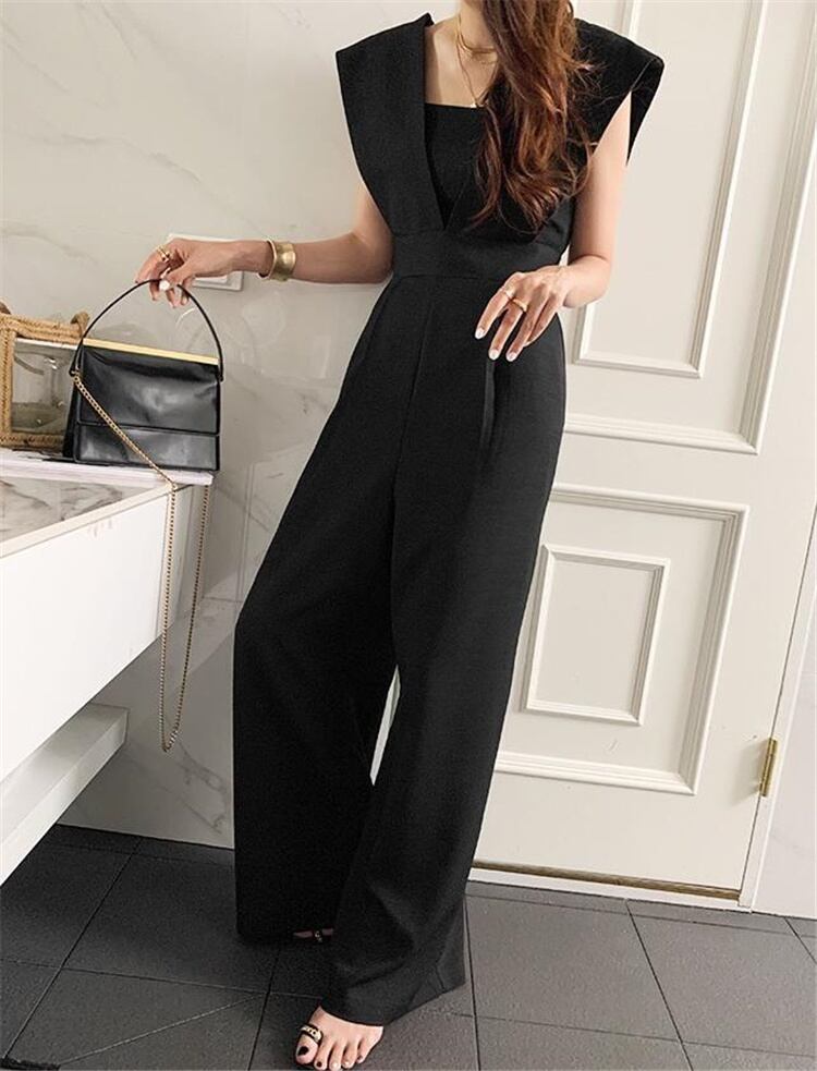 上品映え エレガント 袖なし ハイウエスト スリム ゆったりする オールインワン