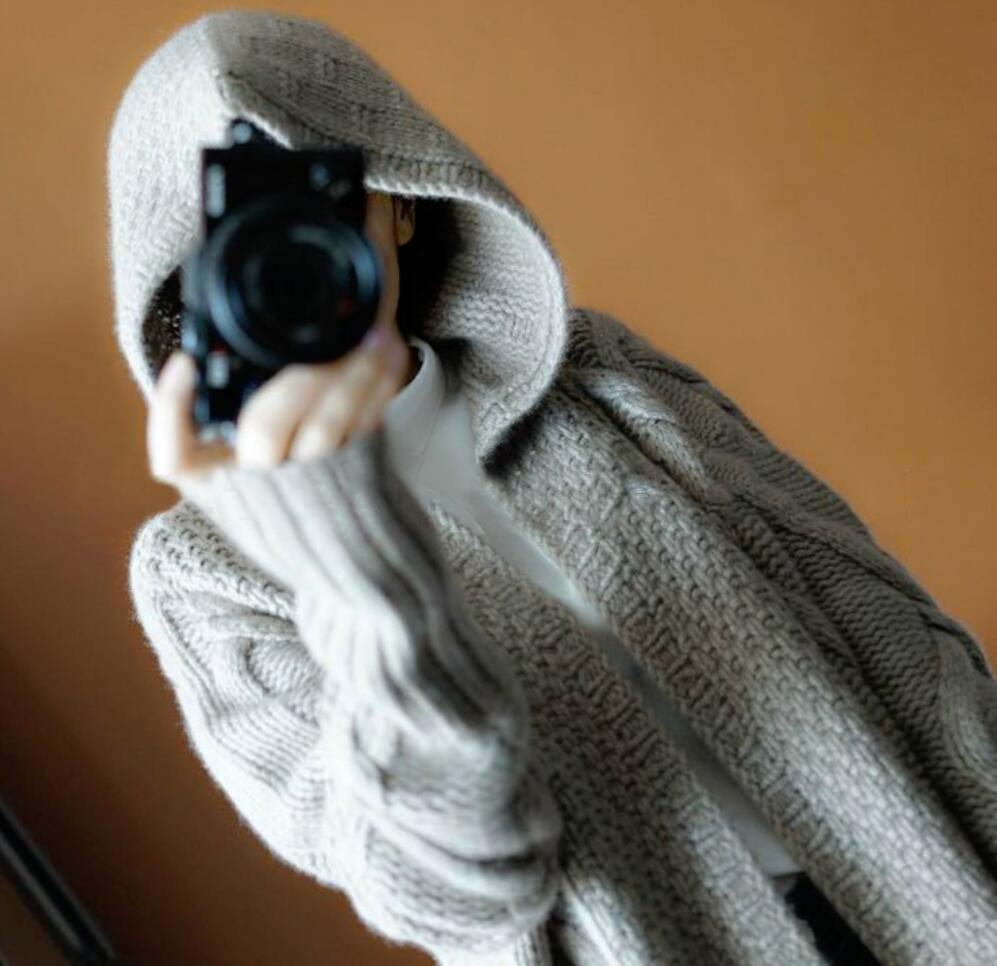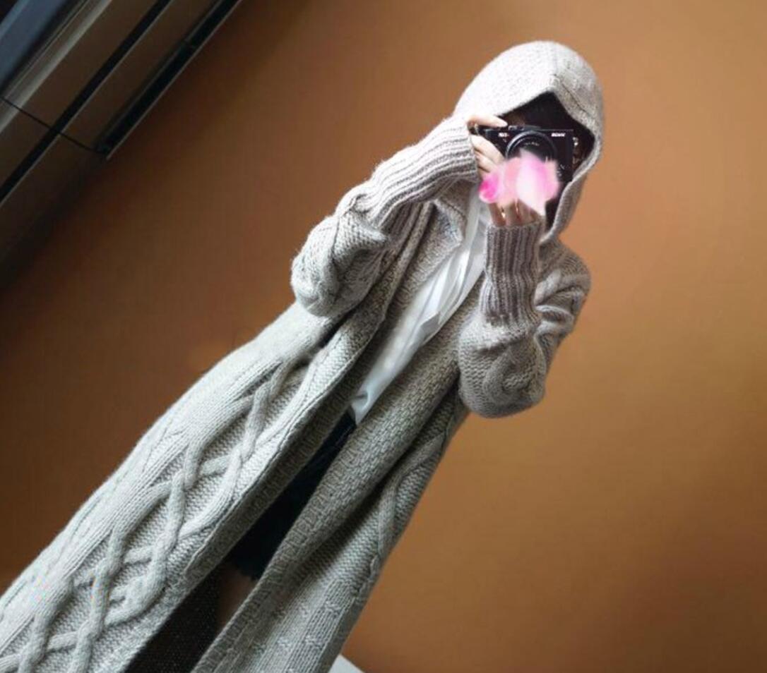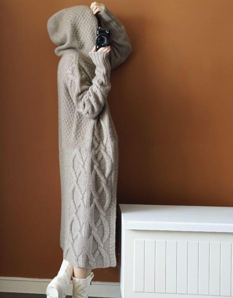 フード付ニットコートです。