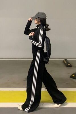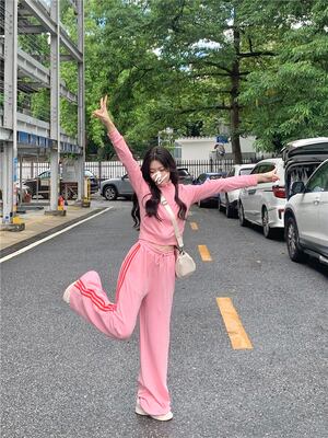 アメリカン/レジャー/スポーツパッケージ/女/初秋/新しいデザイン/バー/短いスタイル/アウターウェア/ワイドレッグパンツ/ホットな女の子/セット