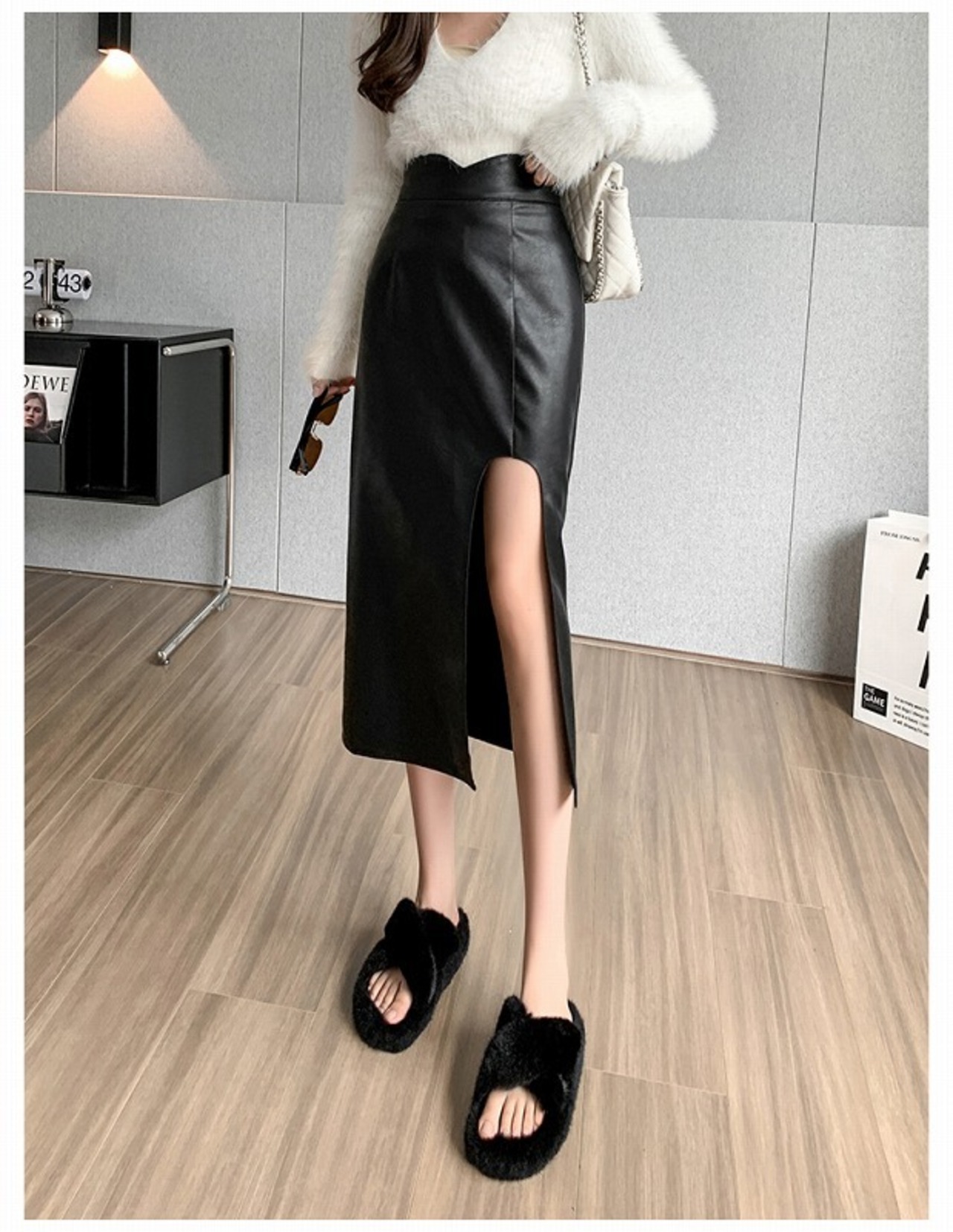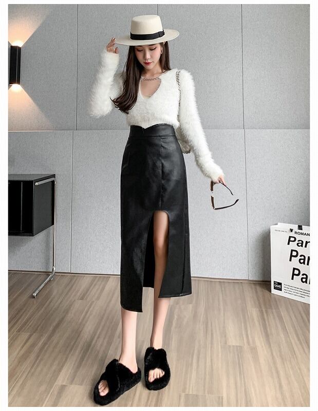 スカート タイトスカート スリット ハイウエスト スリム 着痩せ 無地 sweet系