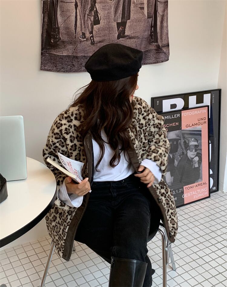 魅力を増すコツ コート 怠惰な風 ヒョウ柄 子羊の毛 縫付 レザー ゆったりする コットン