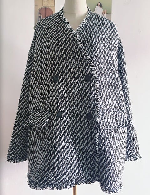 ピーコート 切り替え バイカラー 長袖 体型カバー 着痩せ ダブルブレスト シンプル Pコート ジャケット 配色